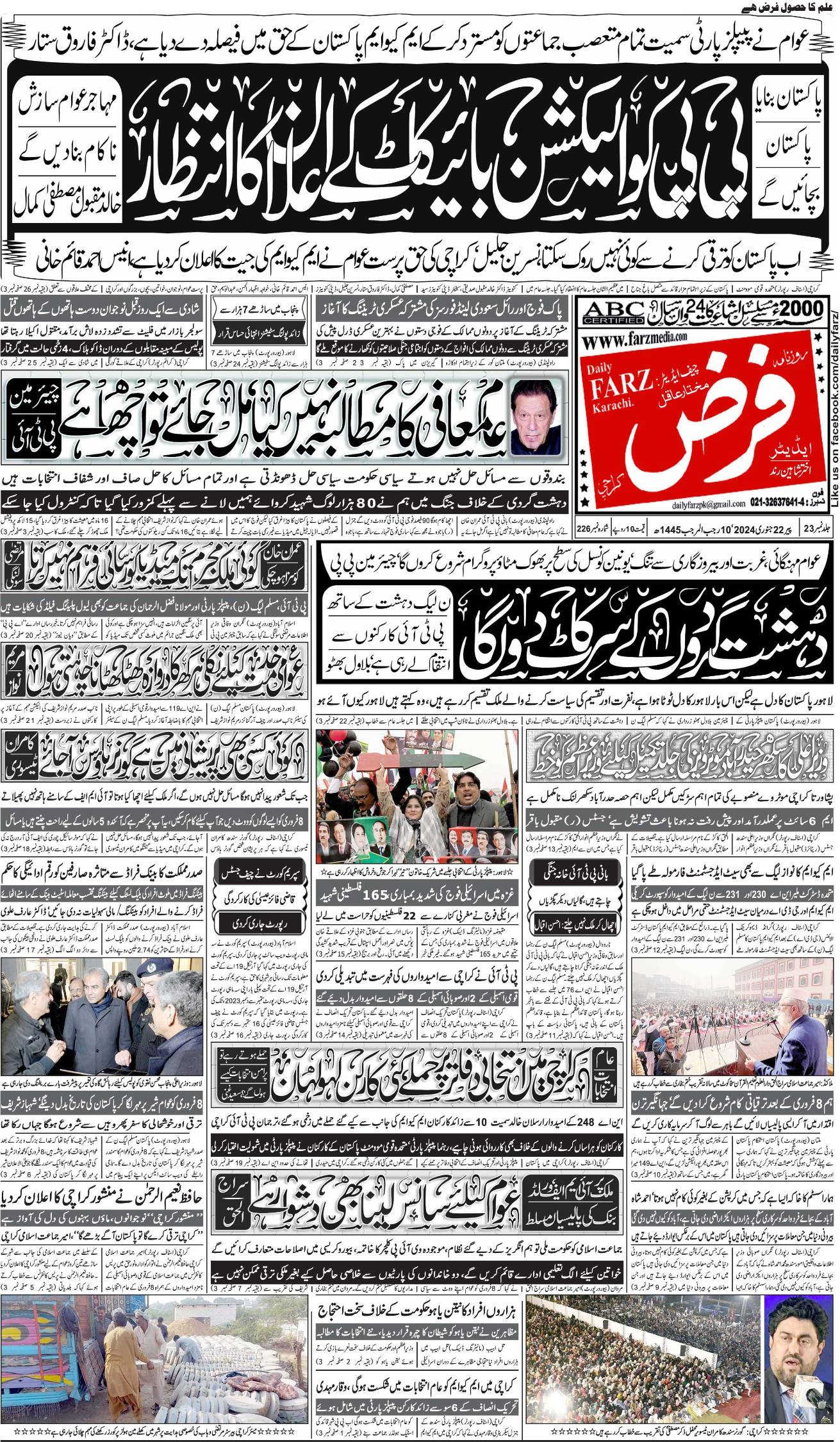 آج کا اخبار22-01-2024