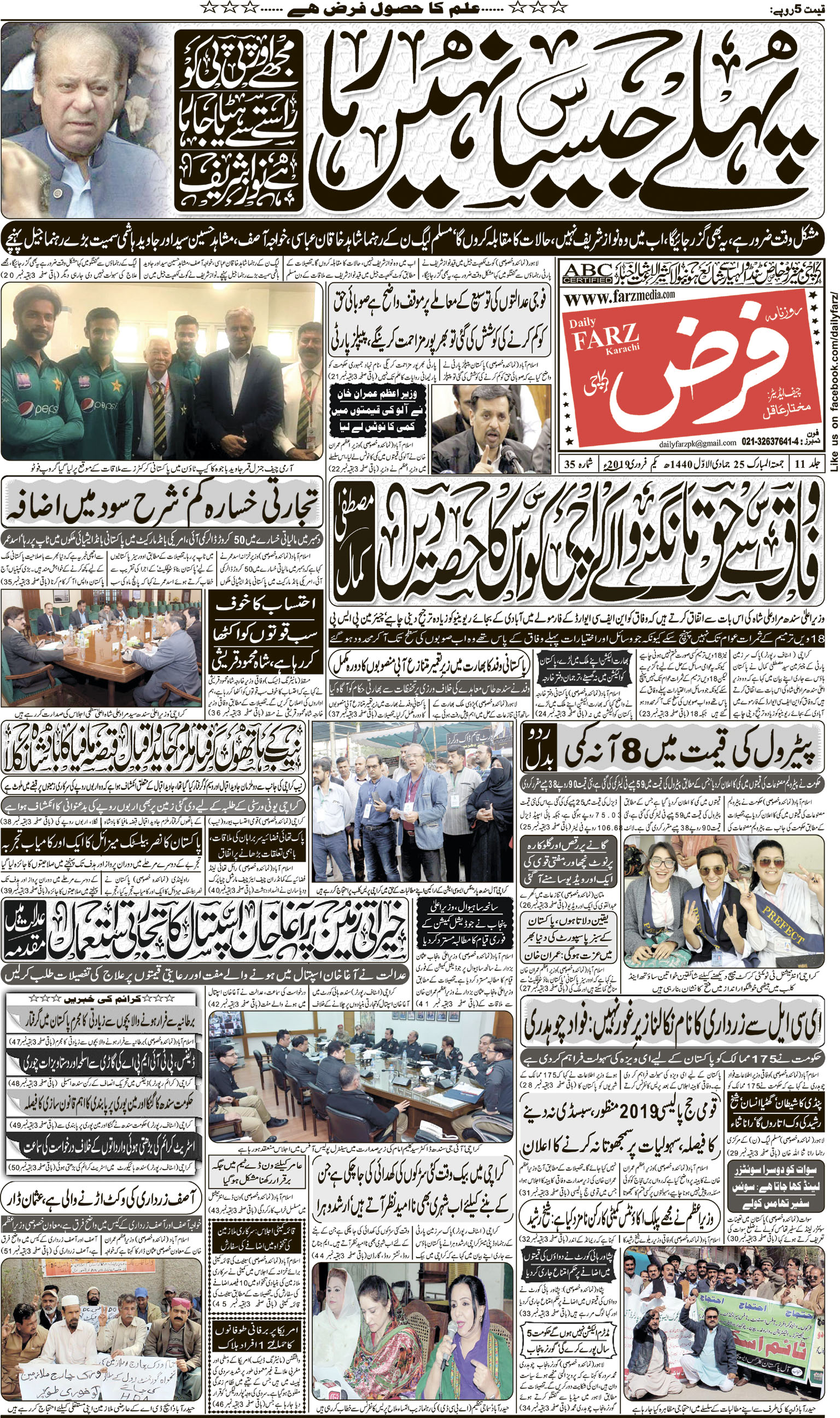 آج کا اخبار – 01-02-2019