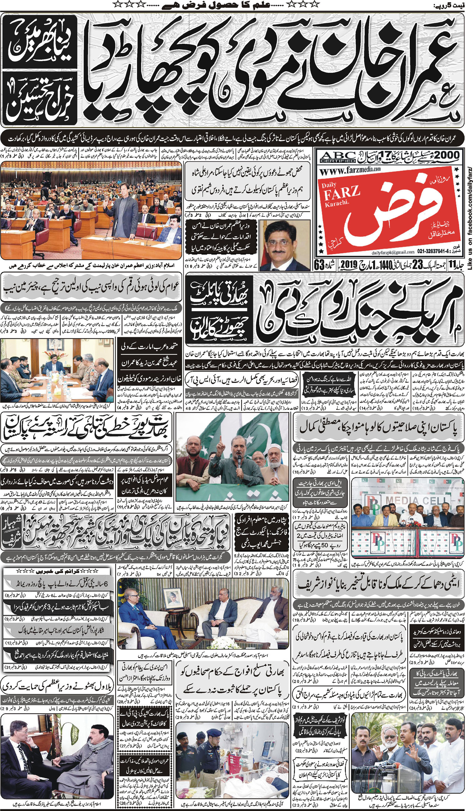 آج کا اخبار – 1-03-2019