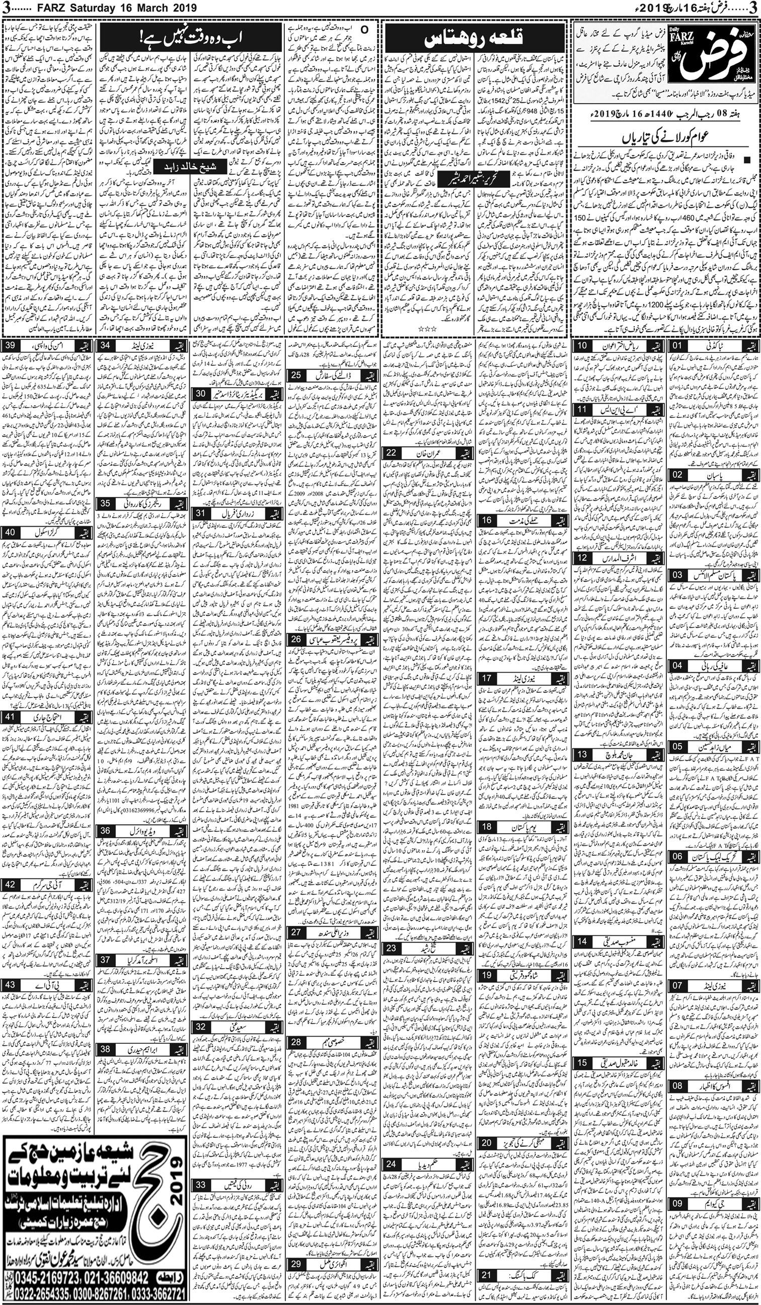 آج کا اخبار -16-03-2019