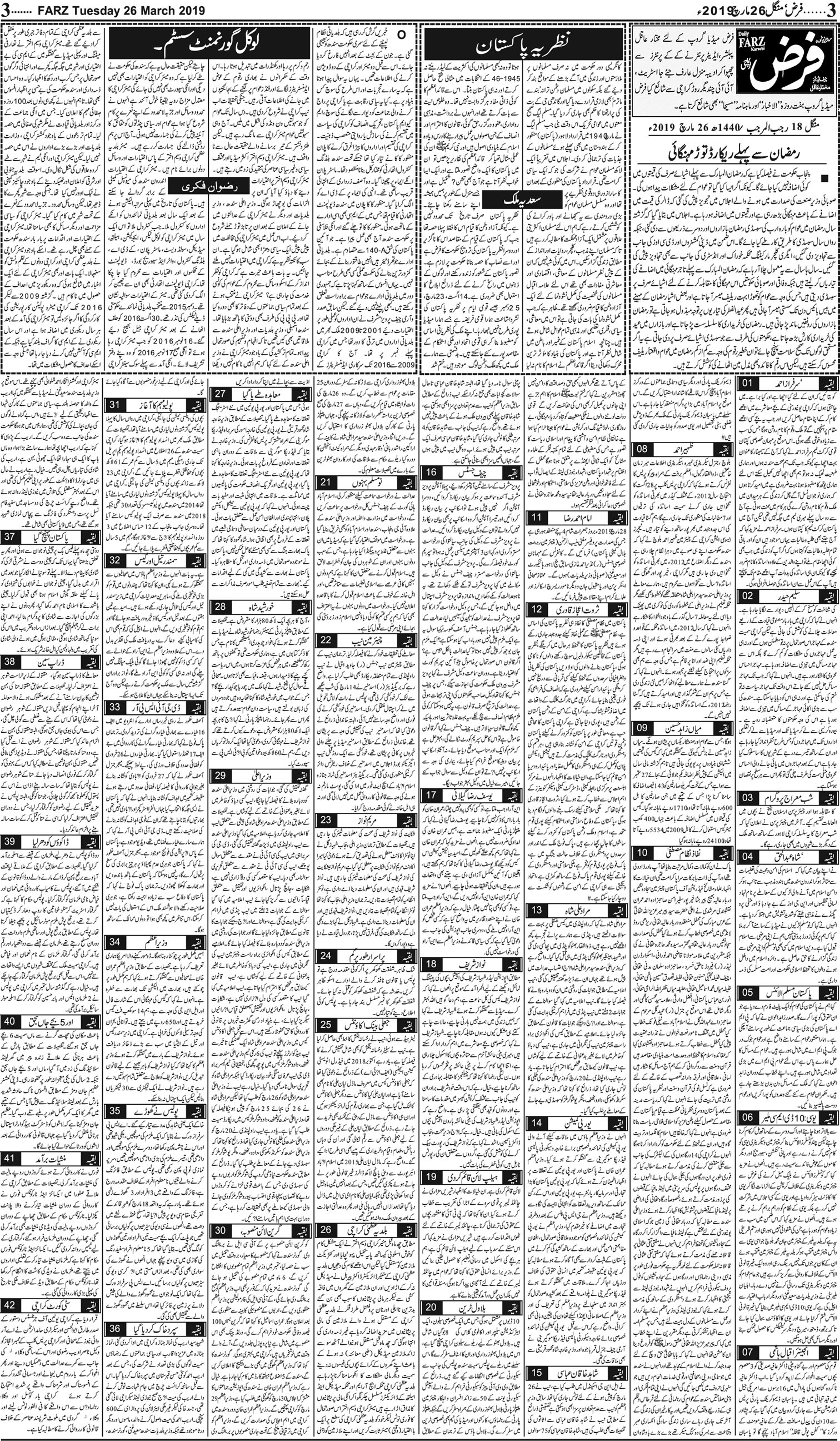 آج کا اخبار -26-03-2019