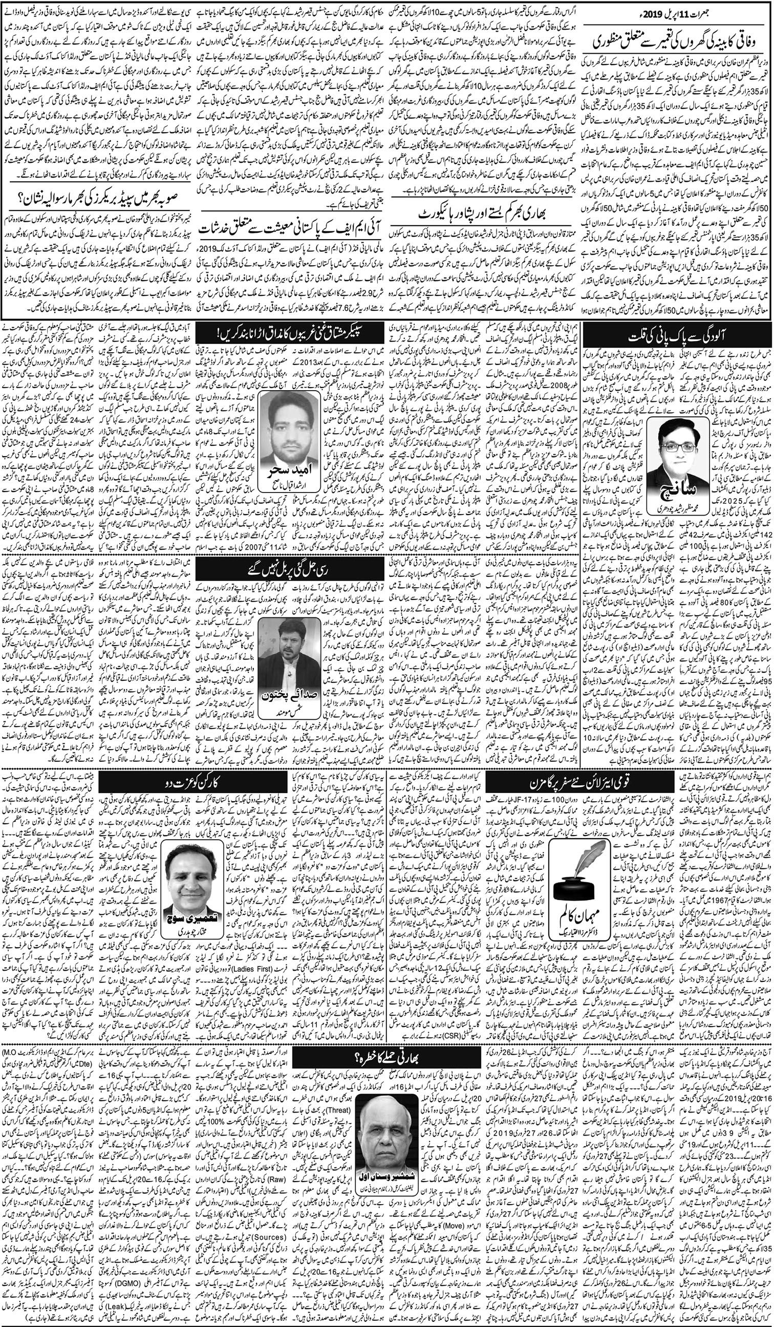 آج کا اخبار -11-04-2019