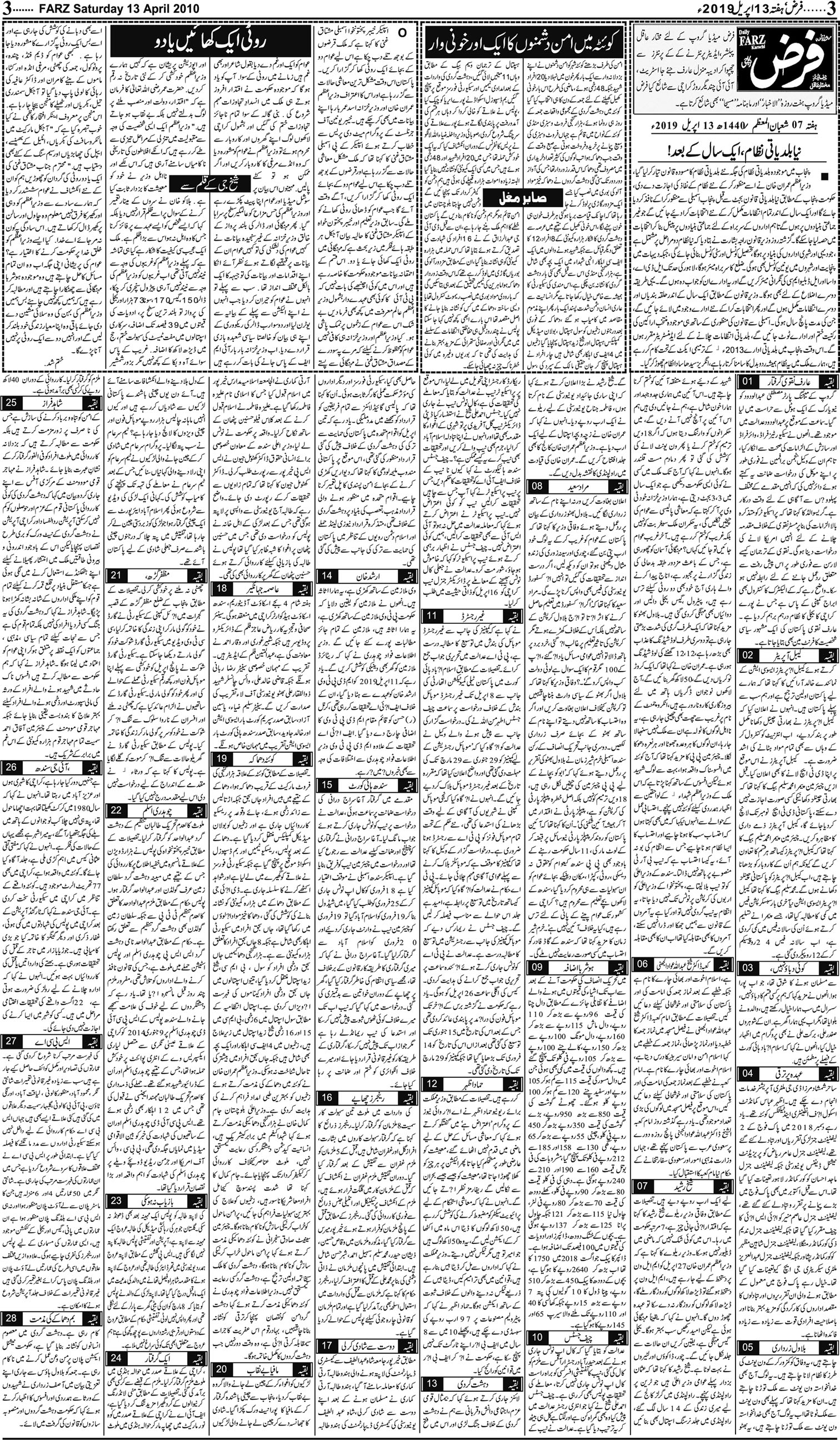 آج کا اخبار -13-04-2019