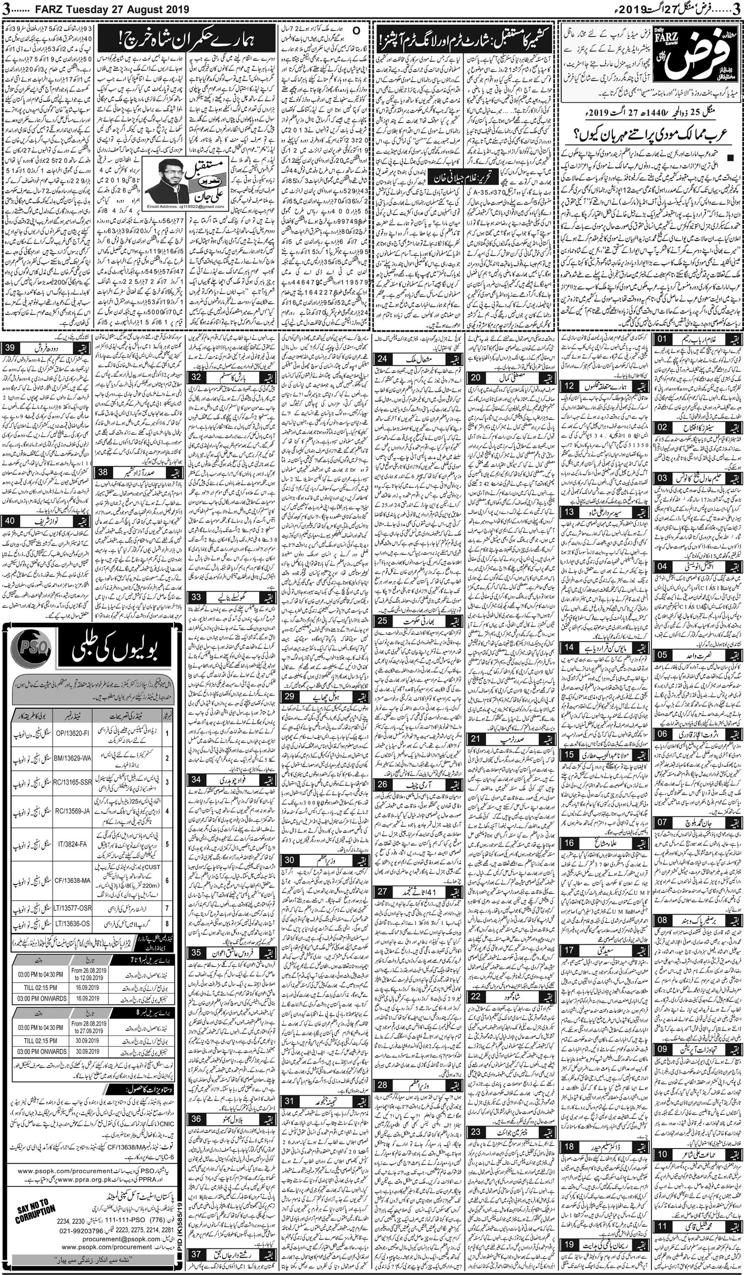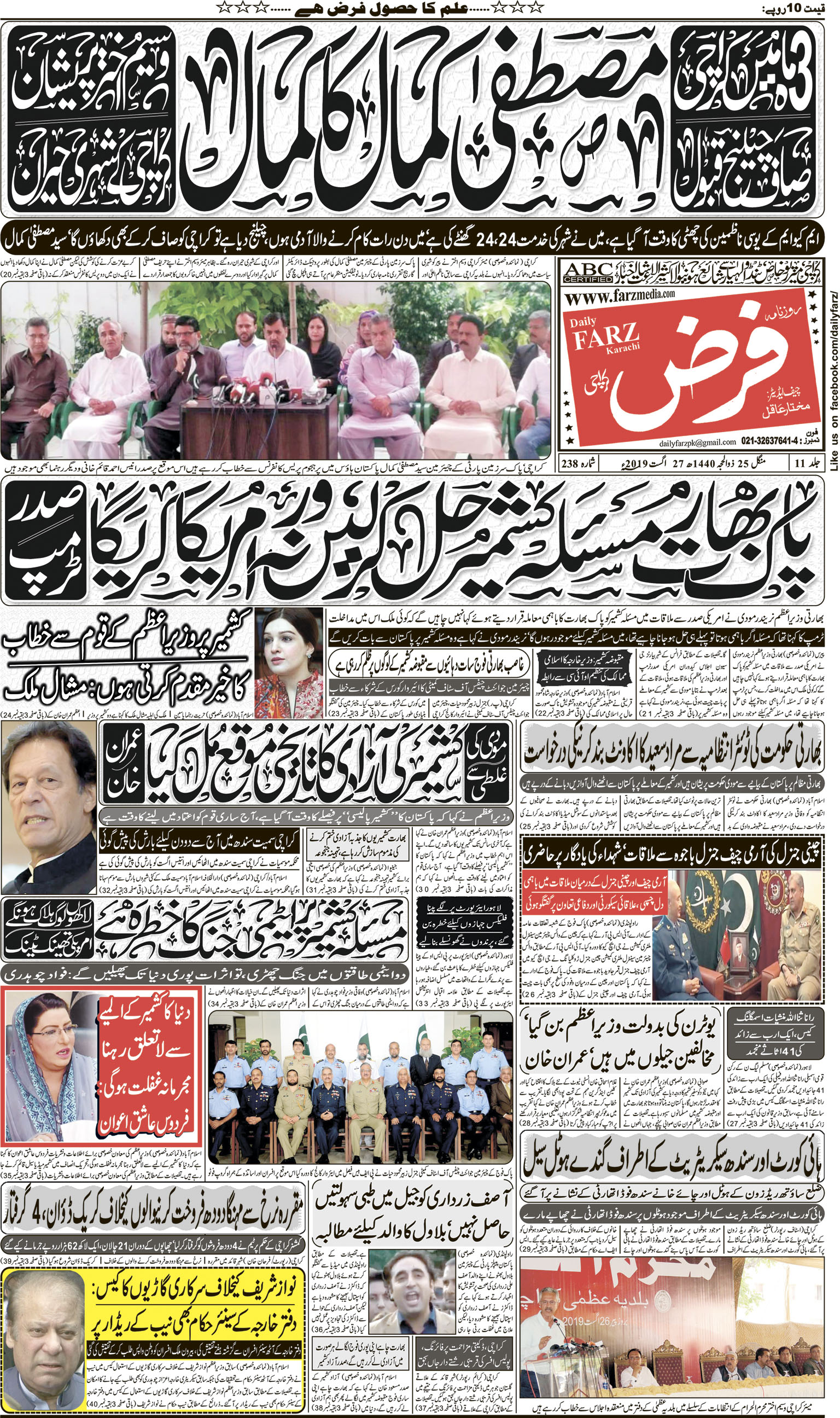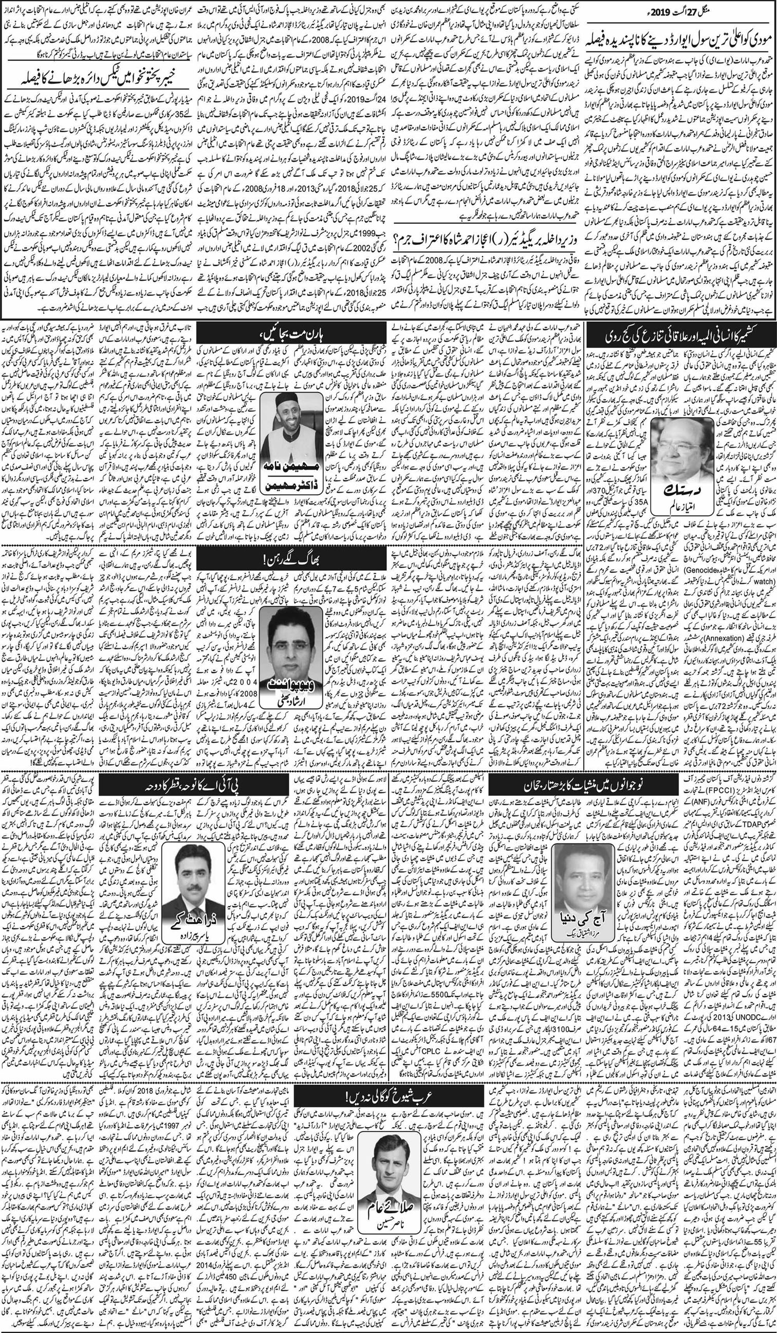 آج کا اخبار -27-08-2019