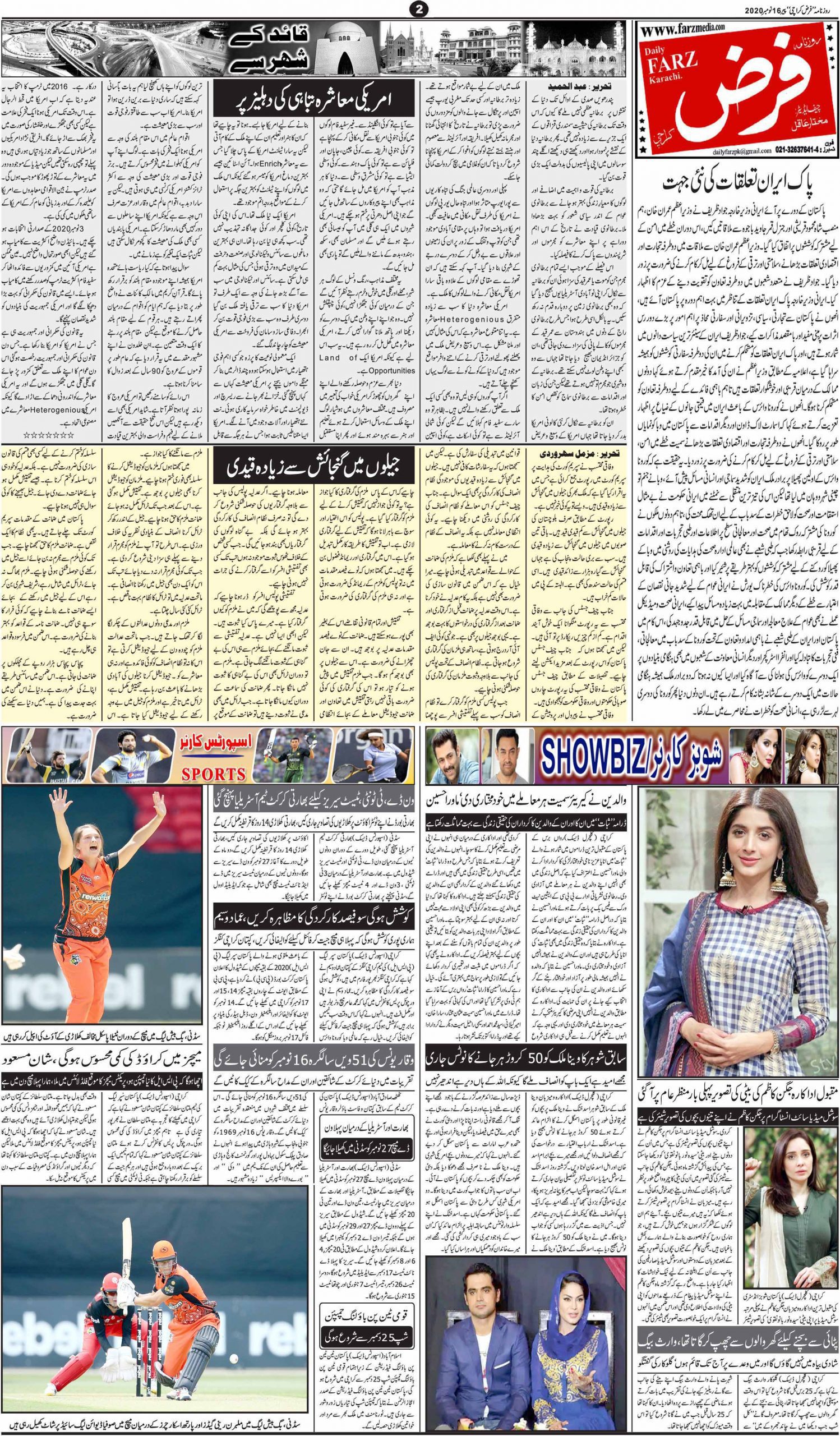 آج کا اخبار 16-11-2020