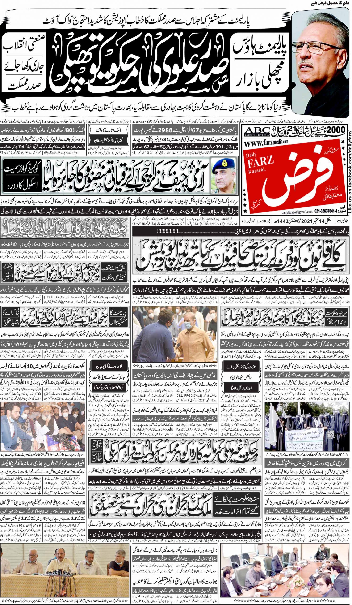 آج کا اخبار 14-09-2021