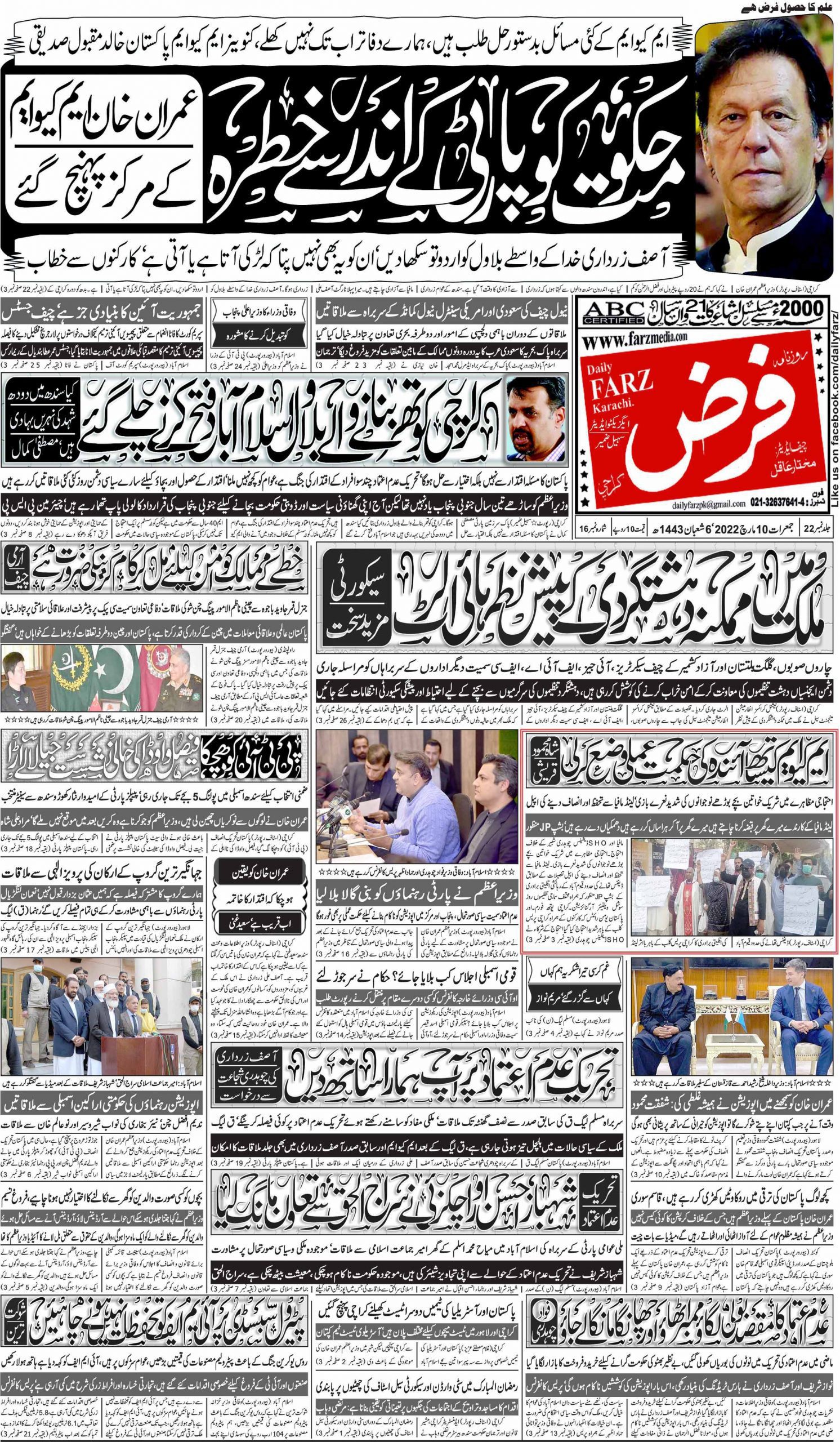 آج کا اخبار 10-03-2022