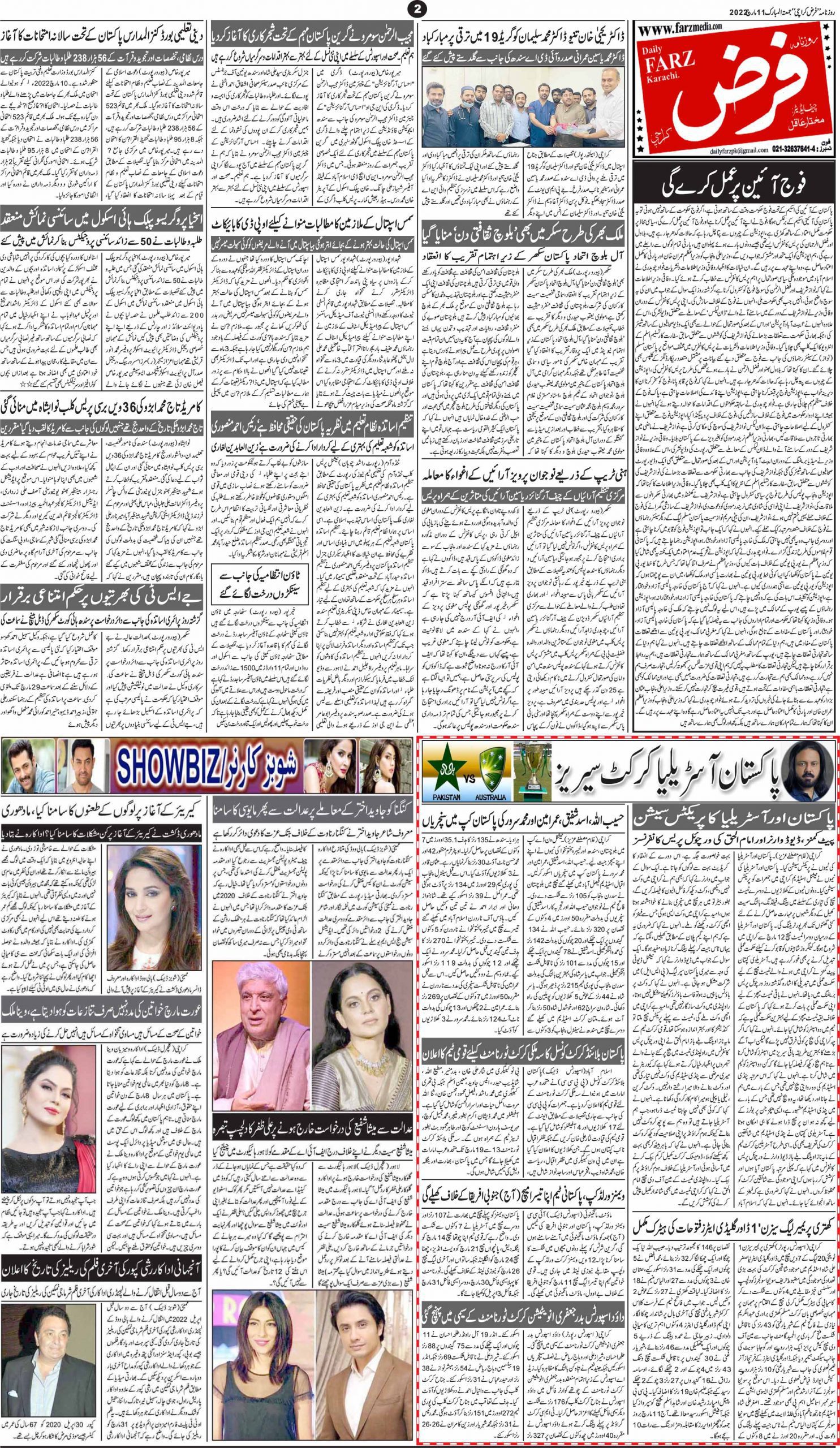 آج کا اخبار 11-03-2022