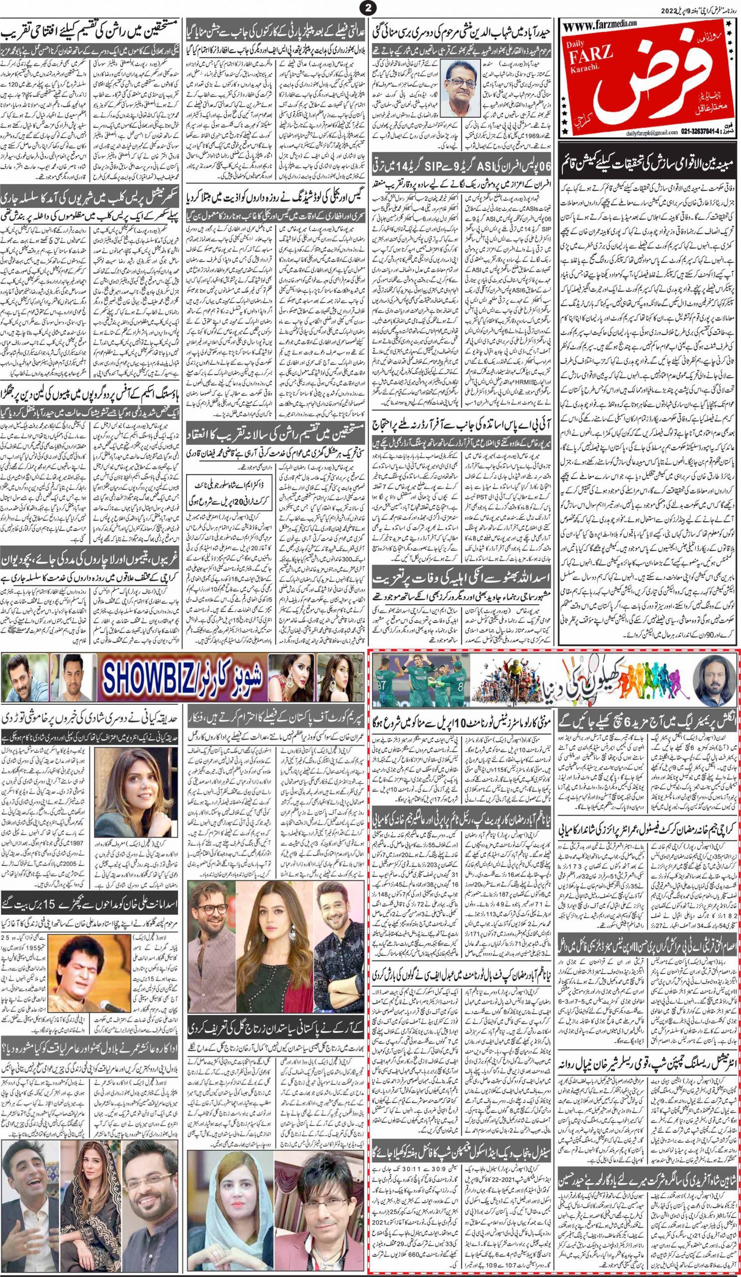 آج کا اخبار 09-04-2022