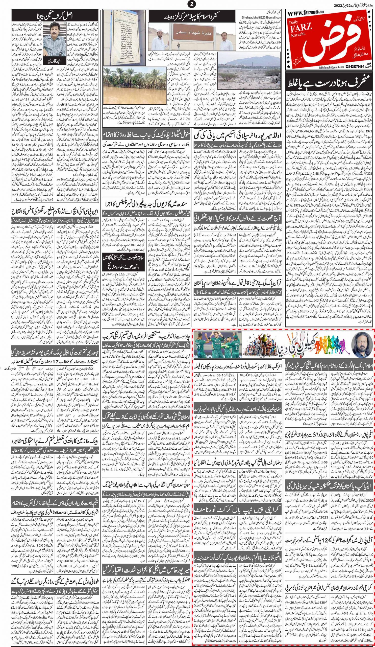 آج کا اخبار 20-04-2022