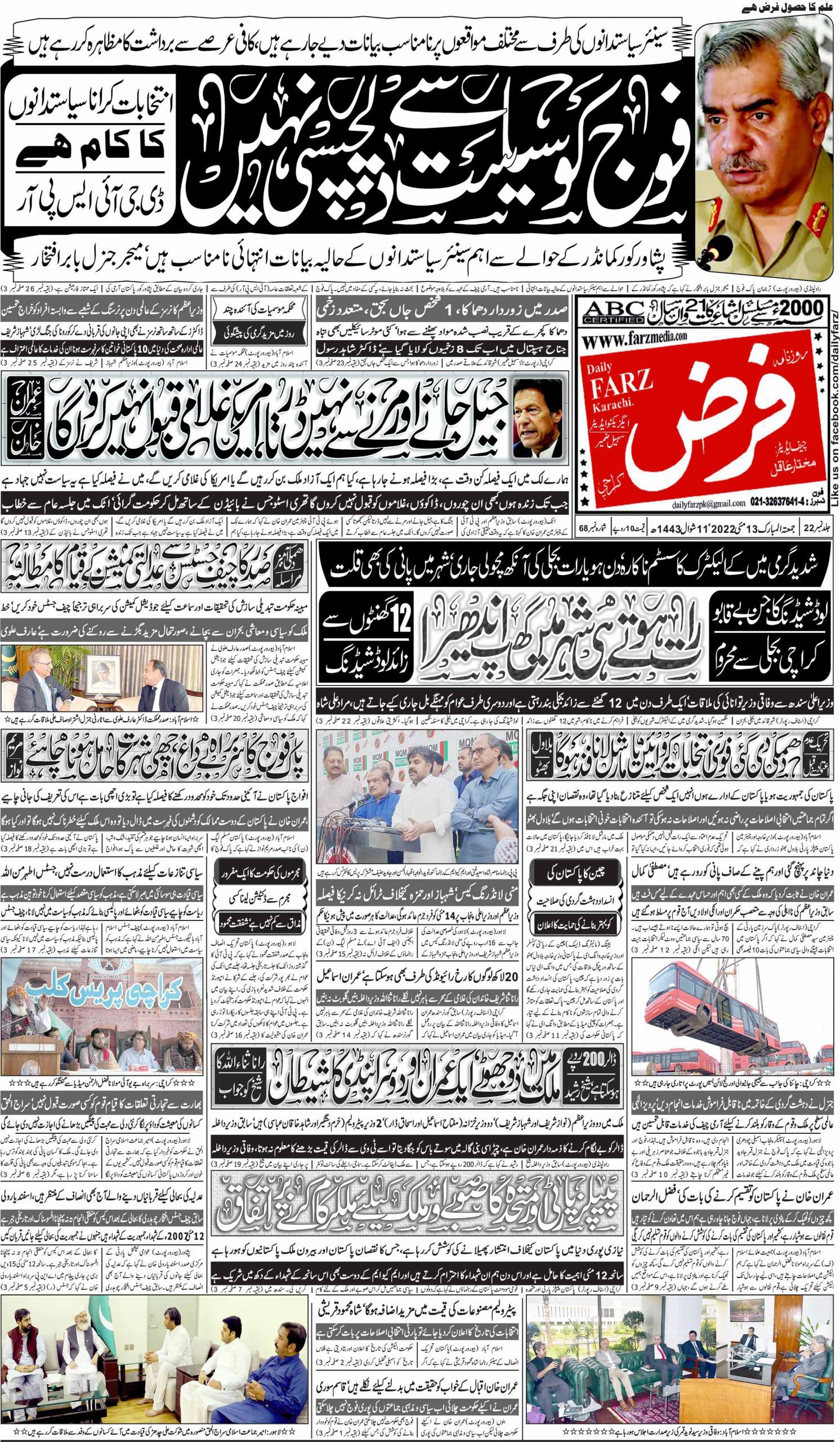 آج کا اخبار 13-05-2022