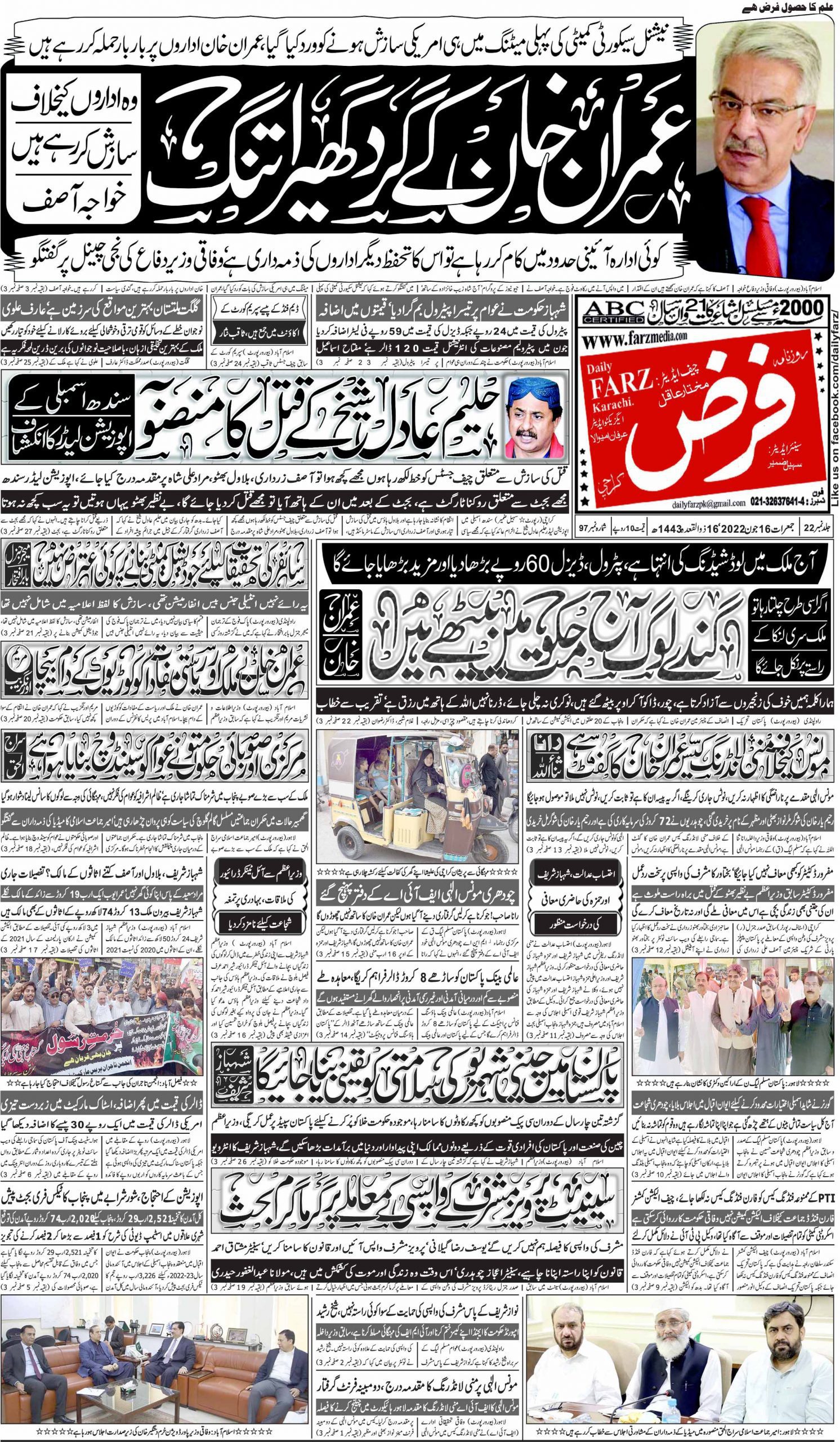آج کا اخبار 16-06-2022