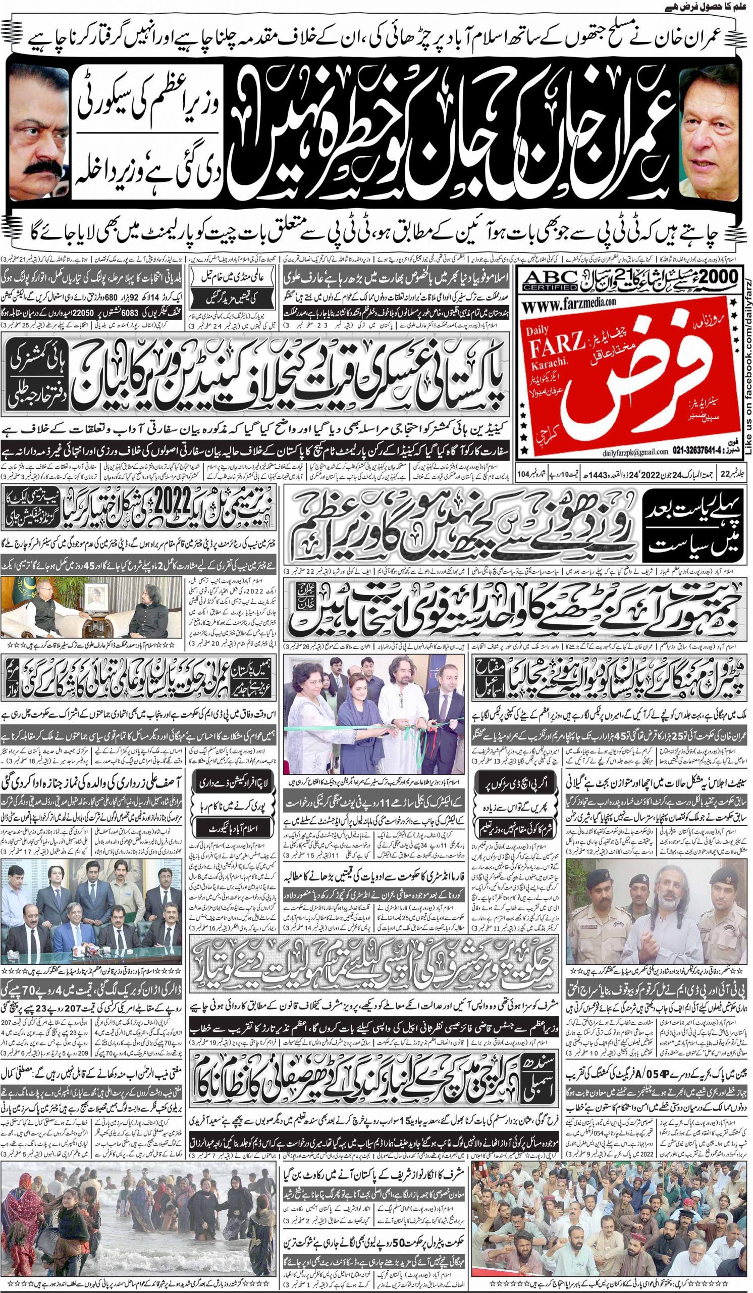 آج کا اخبار 24-06-2022