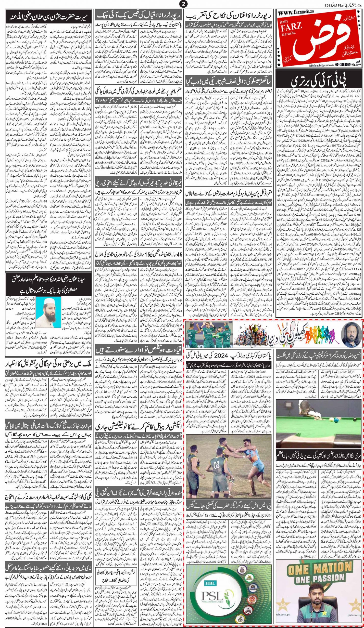 آج کا اخبار 18-07-2022