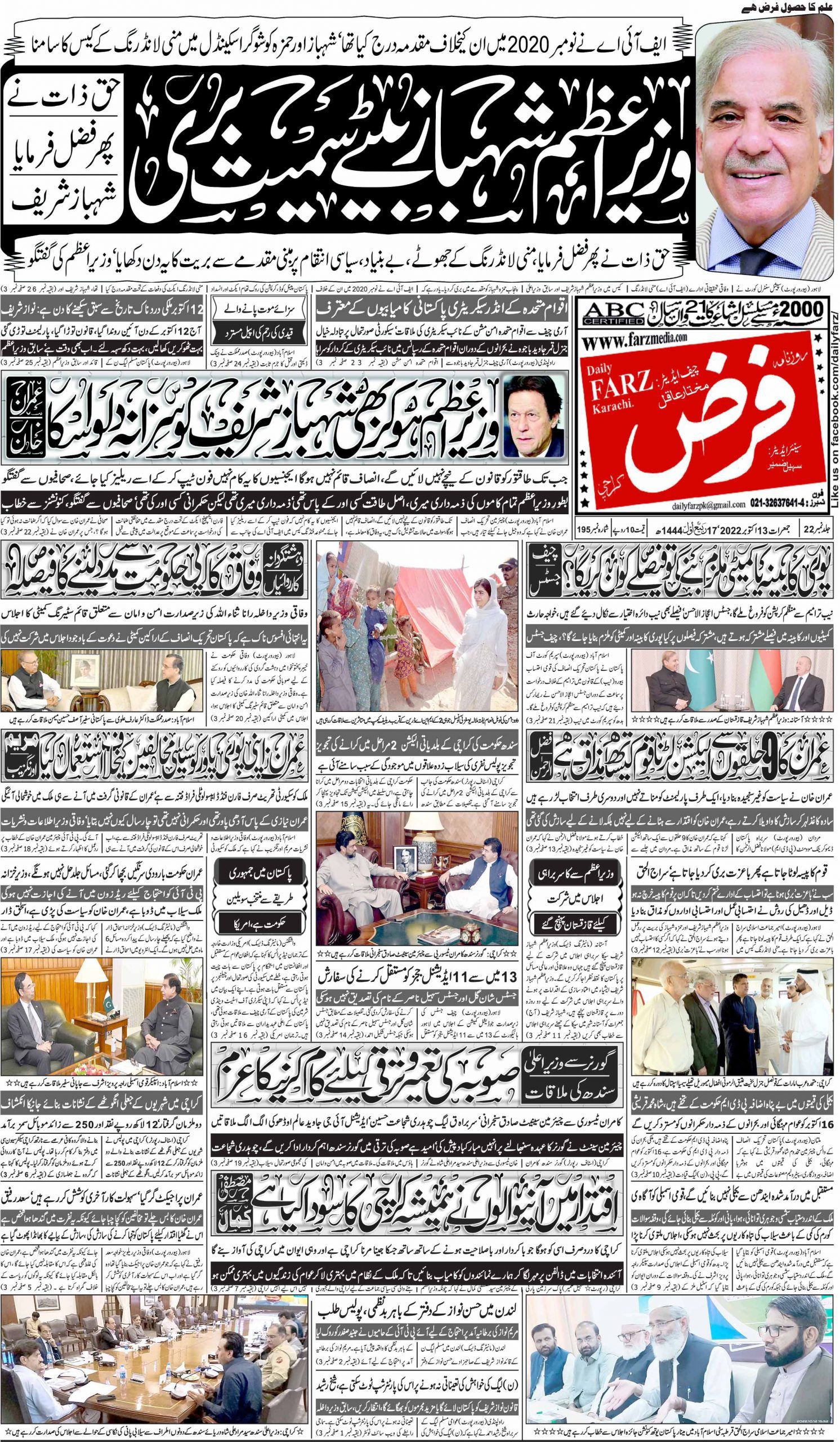 آج کا اخبار 13-10-2022