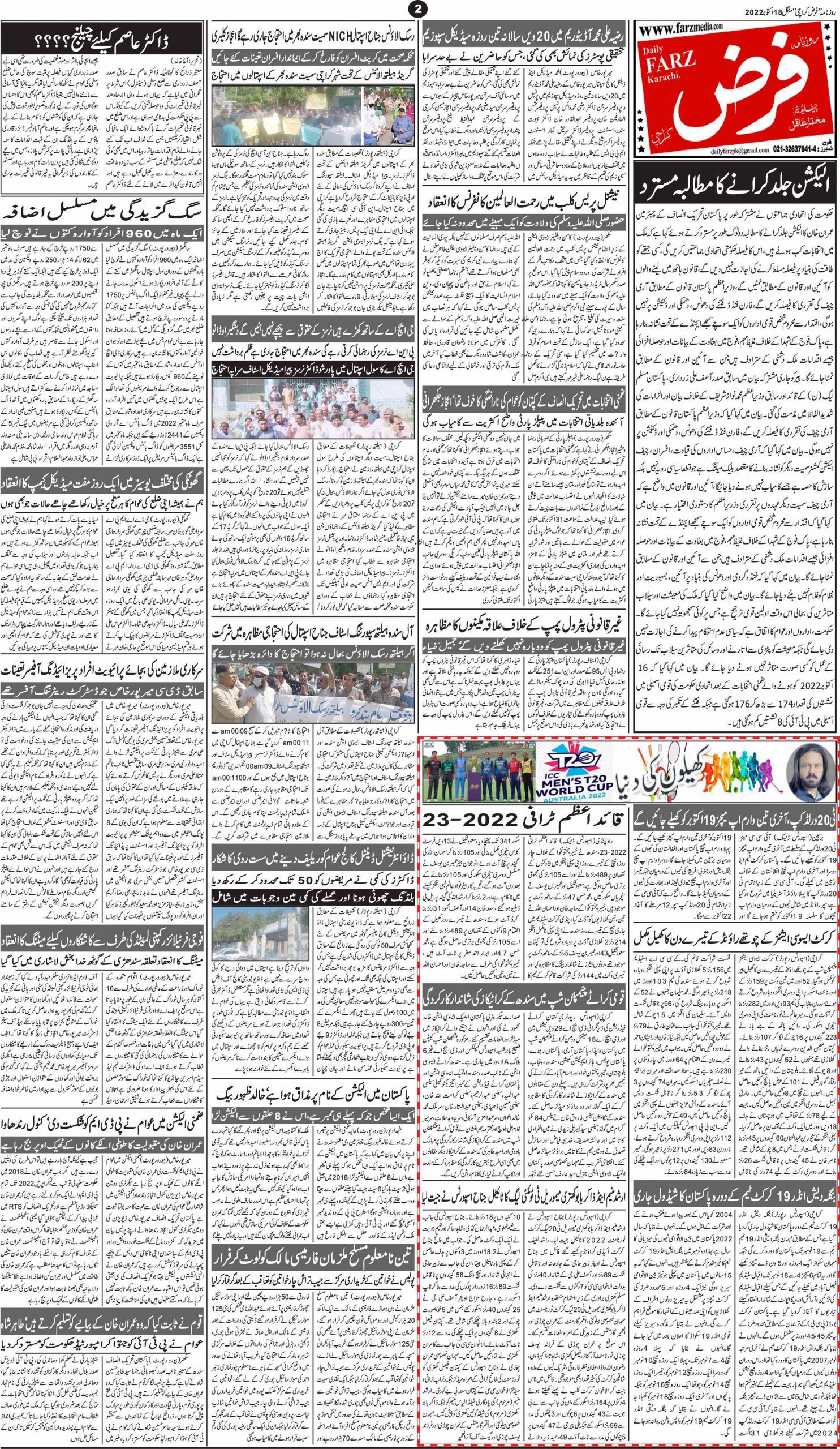 آج کا اخبار 18-10-2022